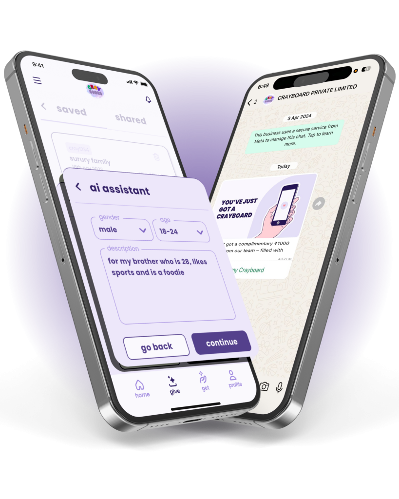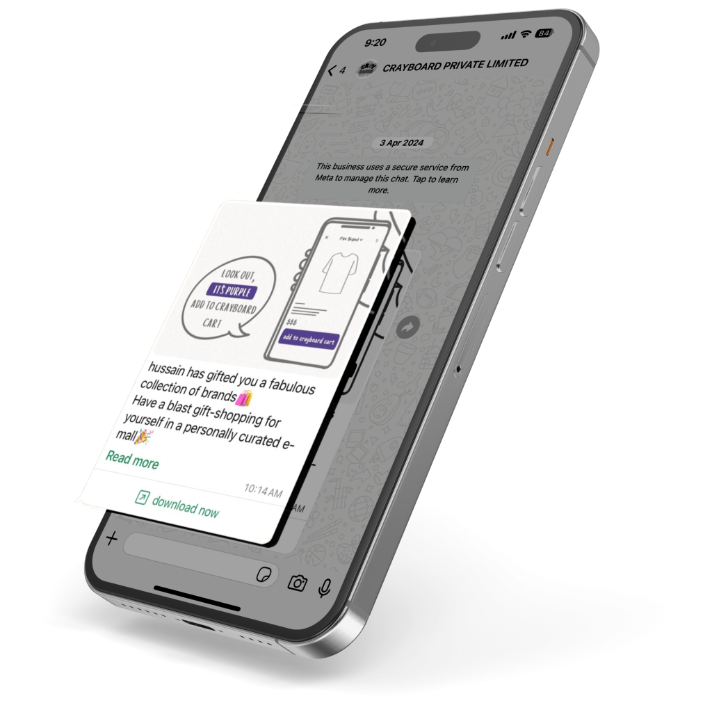 Got a WhatsApp message from Crayboard? Tap and enter a whole mall built just for you. Have fun shopping for free – choose your own gift from a feast of brands. You’ll never again waste or recycle your present. Because you got the perfect gift – yay!